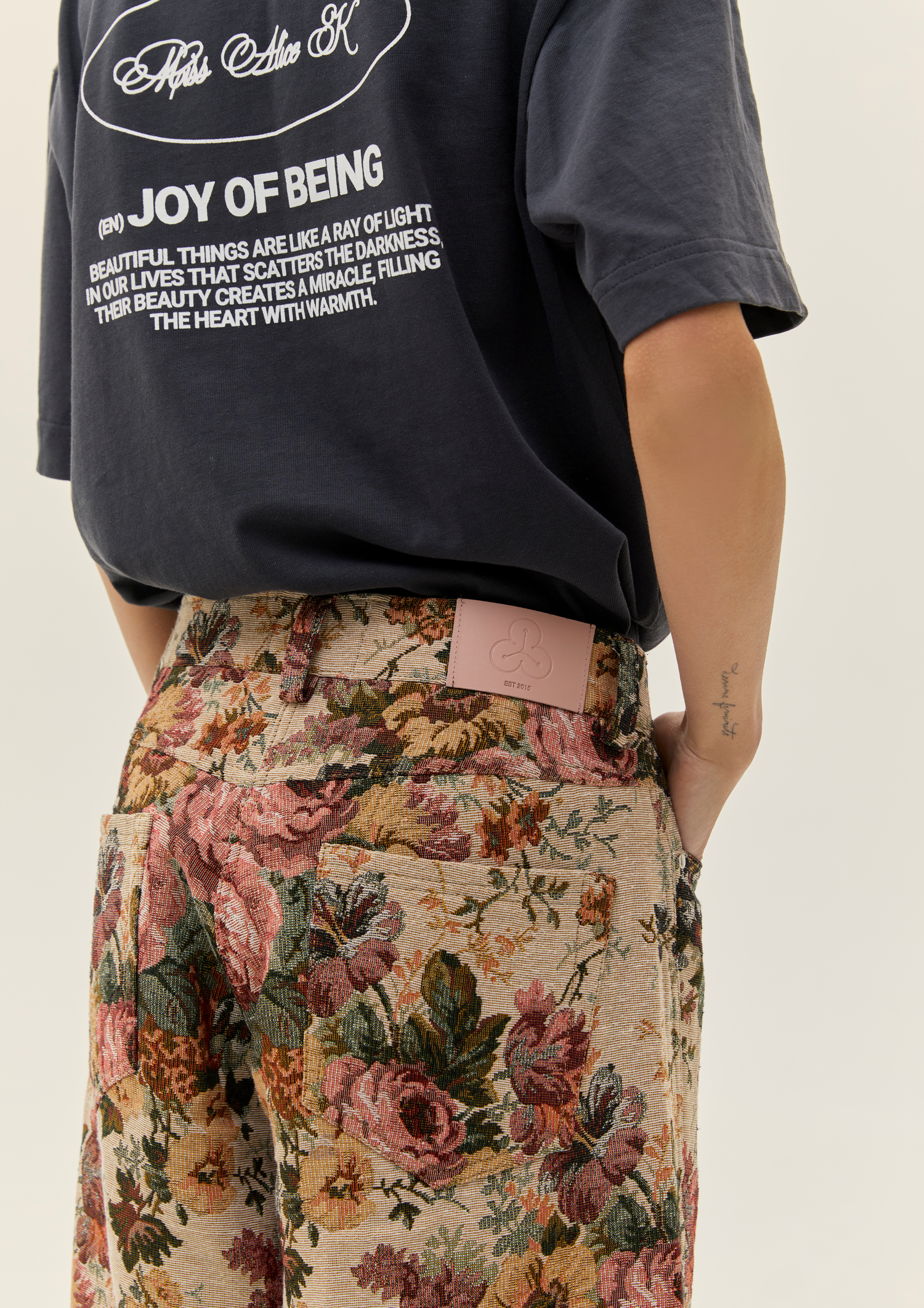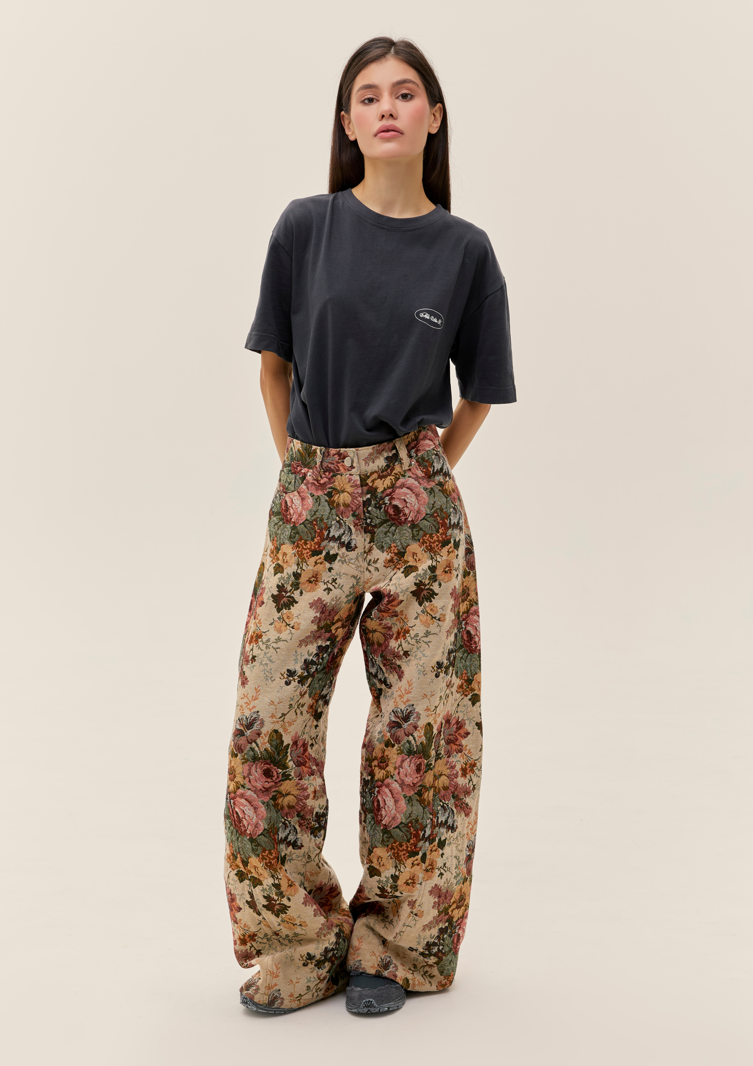 Jacquard Pants With Floral Print